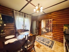 Продается красивый дом из добротного сруба на зеленом участке с искусственным озером! Участок сухой и ровный, правильной формы, отдельно на участке сделан дренаж. Дом теплый, очень уютный и функциональный, с отделкой и мебелью. Вы сможете заехать и жить, без дополнительных вложений. Планировка дома: на первом этаже расположена просторная гостиная с камином из кирпича (на собственном фундаменте), большая квадратная кухня, санузел, бойлерная и веранда, на втором этаже 2 спальни (можно легко сделать 3 спальни, при желании), санузел, два больших балкона (один из них застекленный, второй-открытый). Из окон дома открывается красивый вид на участок и лес. Участок красивый, много хвойных растений (очень живописно). На участке также есть баня (на дровах) со своей просторной комнатой для отдыха, санузлом и бассейном. Есть мангальная зона, дровник и помещение для хранения тех.инвентаря. Сделан навес для 2-х автомобилей. В доме всегда постоянно проживали и проживают, за домом ухаживают. Соседи также проживают постоянно. Природа вокруг очень красивая: лес, речка, озеро с чистейшей водой. Подъезд к дому круглогодичный по хорошей дороге. Школы, магазины, аптеки и прочая инфраструктура- рядом. В собственности с 2009 года. Свободная продажа, полная стоимость в договоре. Оперативно покажем Вам дом и выйдем с Вами на сделку, звоните.